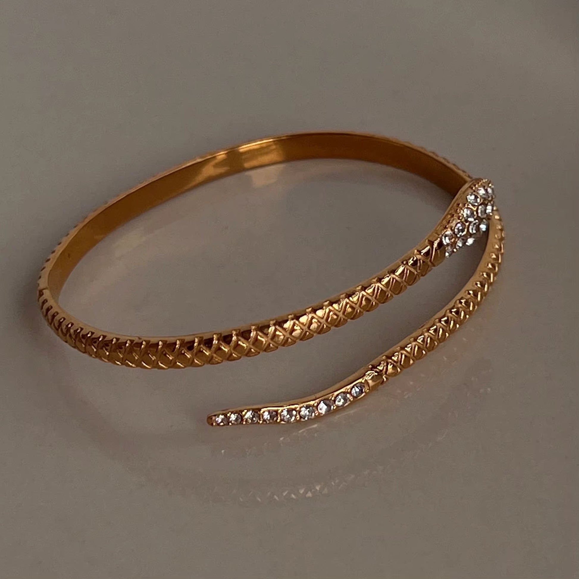 This exquisite bracelet features a delicate snake chain design, plated in radiant 18K gold. Crafted from high-quality stainless steel, this piece is both waterproof and tarnish-free, ensuring lasting beauty. Adorned with a sparkling zircon gemstone, this bracelet is also gentle on sensitive skin.